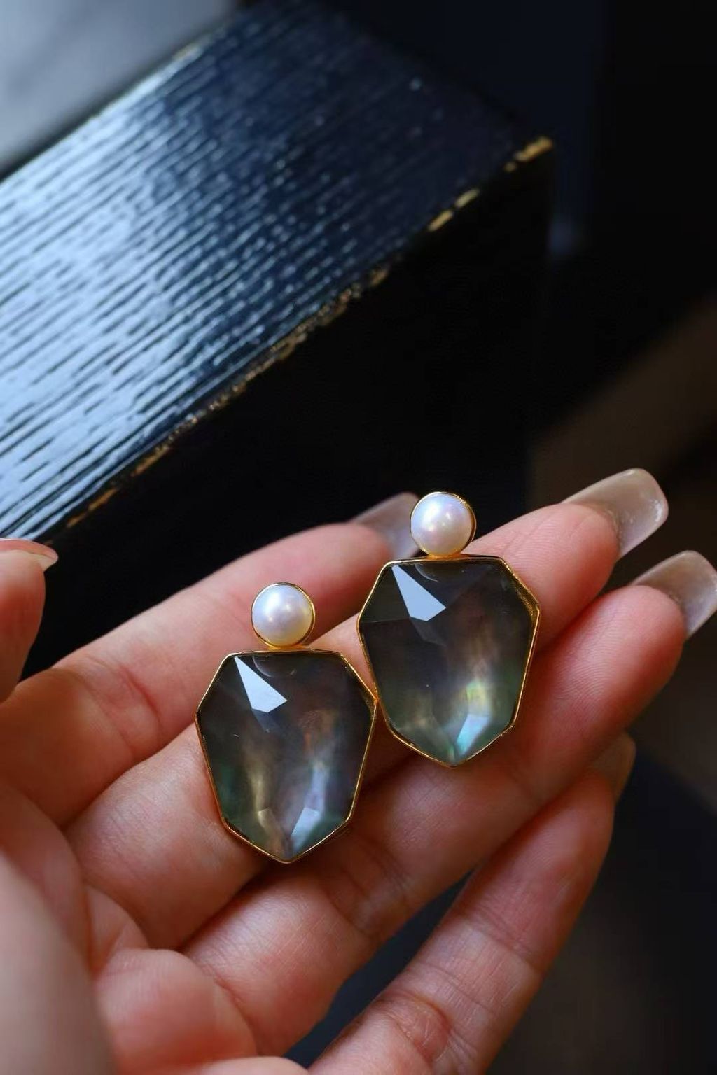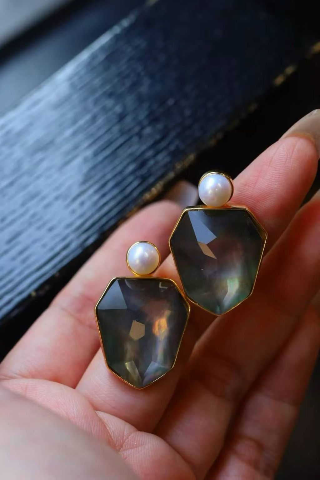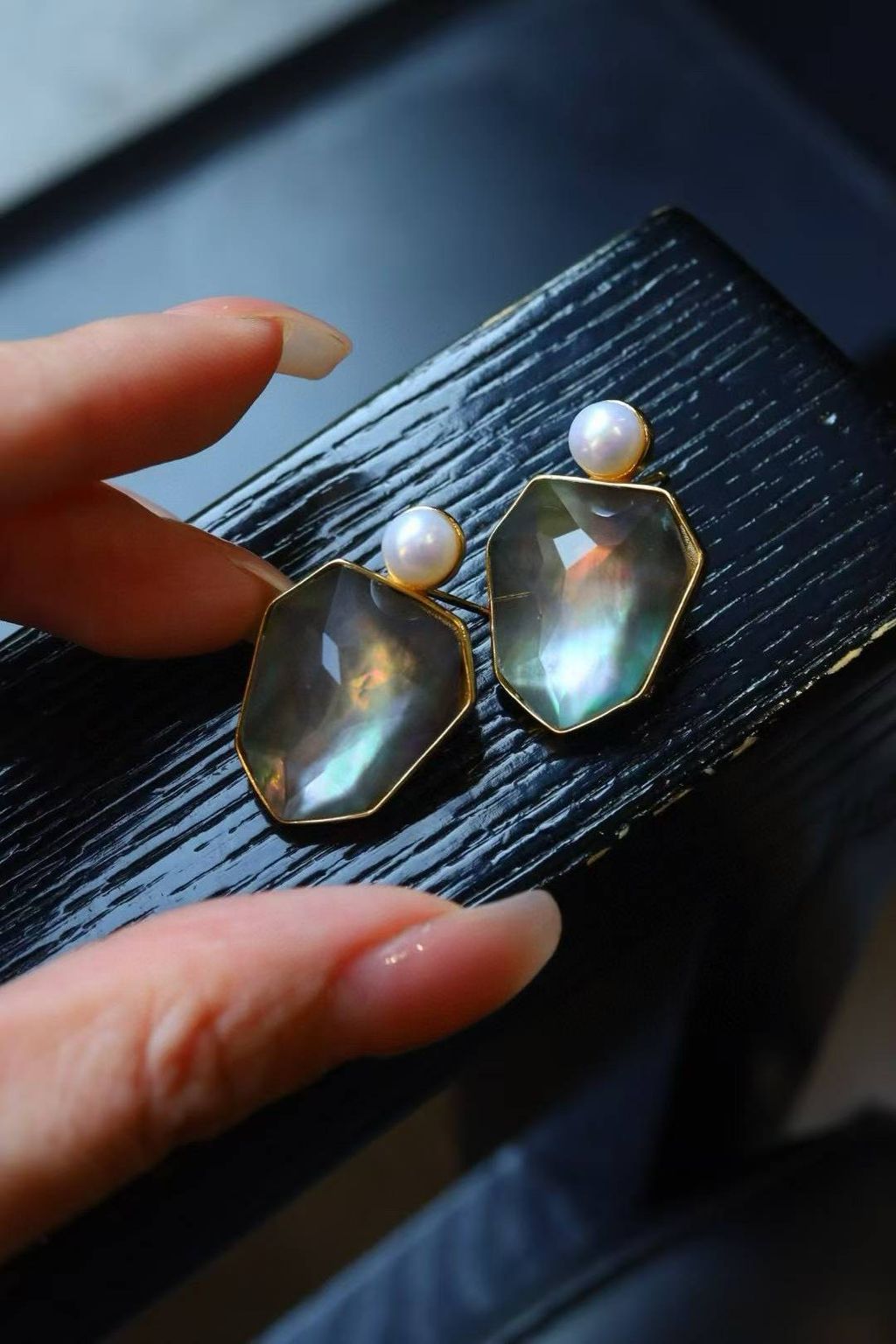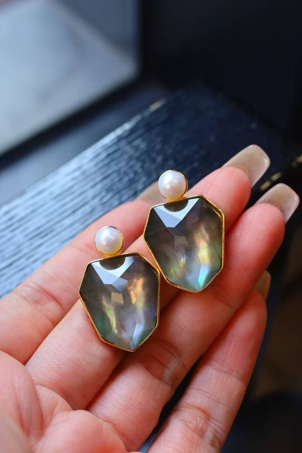 Make a statement with the Amber & Abalone Shell Geometric Stud Earrings, a unique design that blends natural elegance with artistic individuality.
