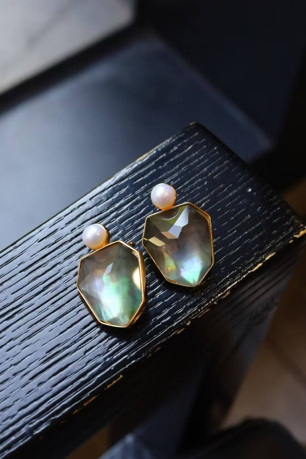 Amber & Abalone Shell Geometric Stud Earrings
