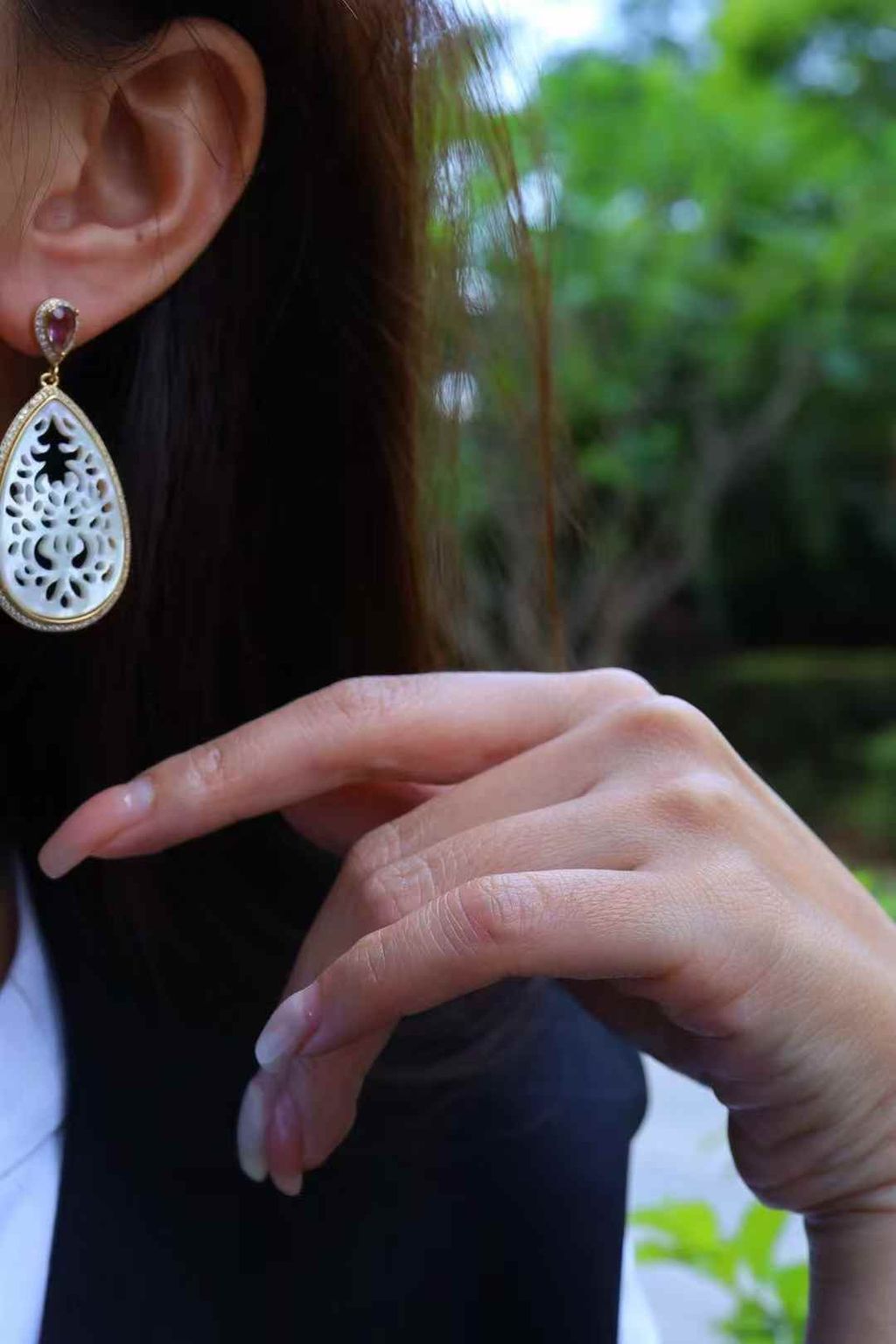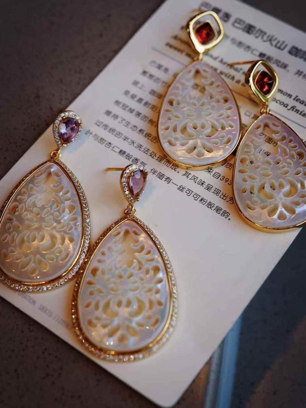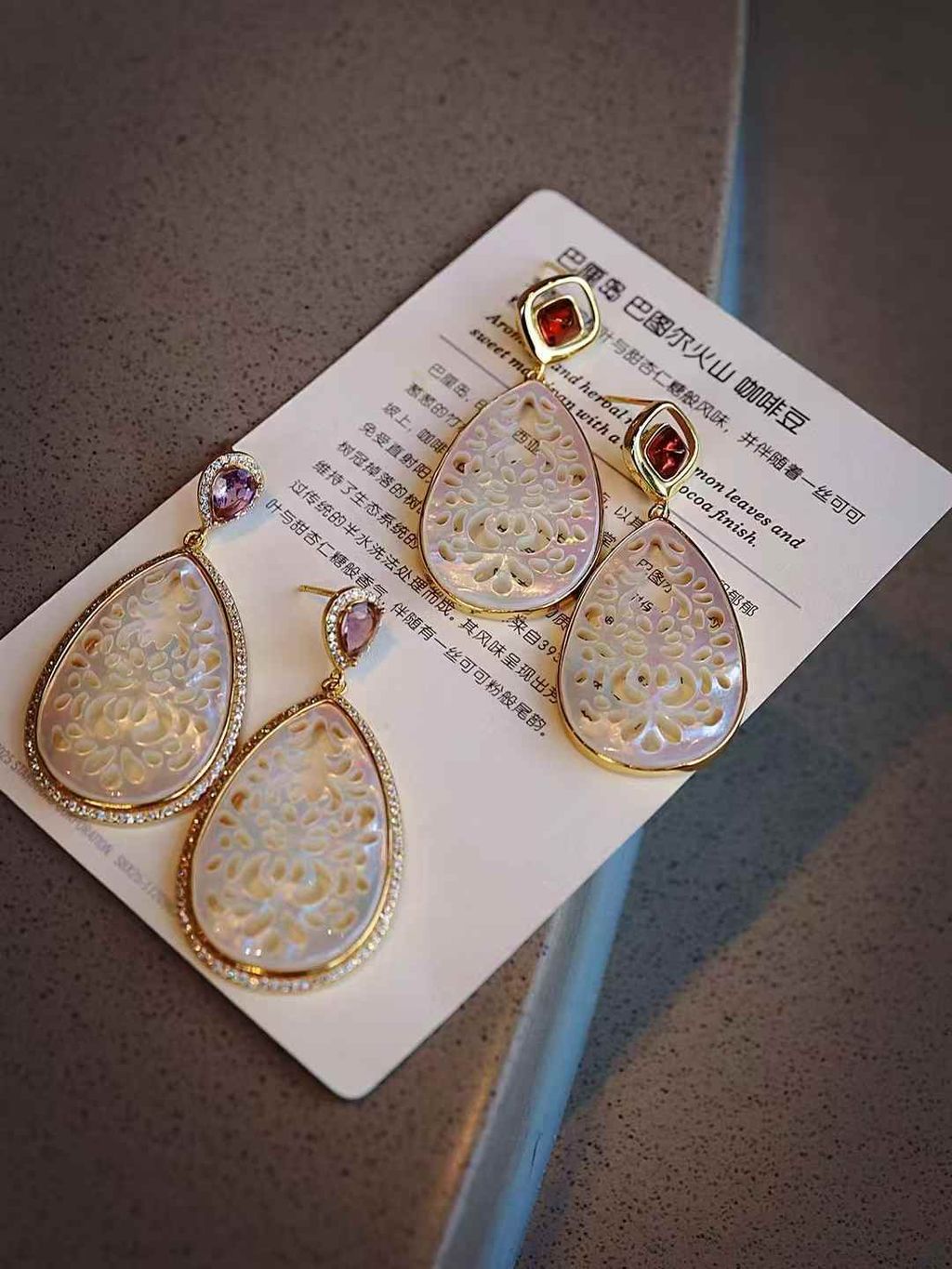 Embrace timeless sophistication with our Designed White Mother-of-Pearl and Amethyst Earrings, blending luminous mother-of-pearl, vibrant amethyst, and rich garnet for an exquisite, high-quality look.
