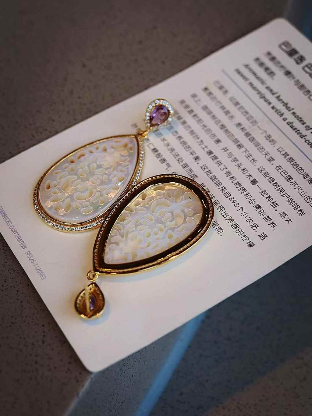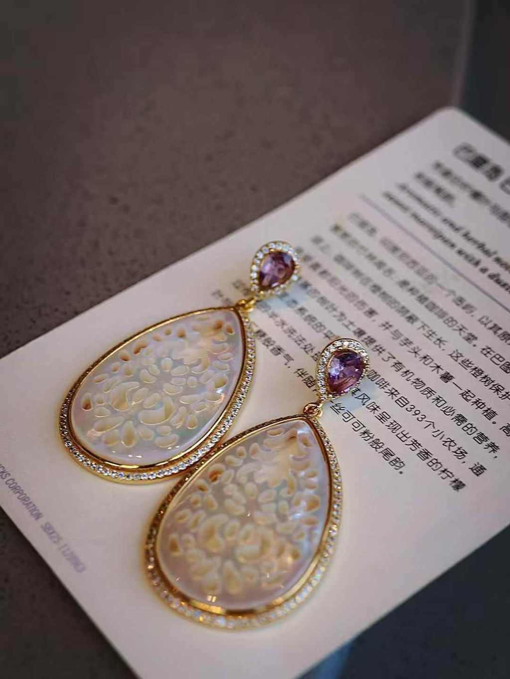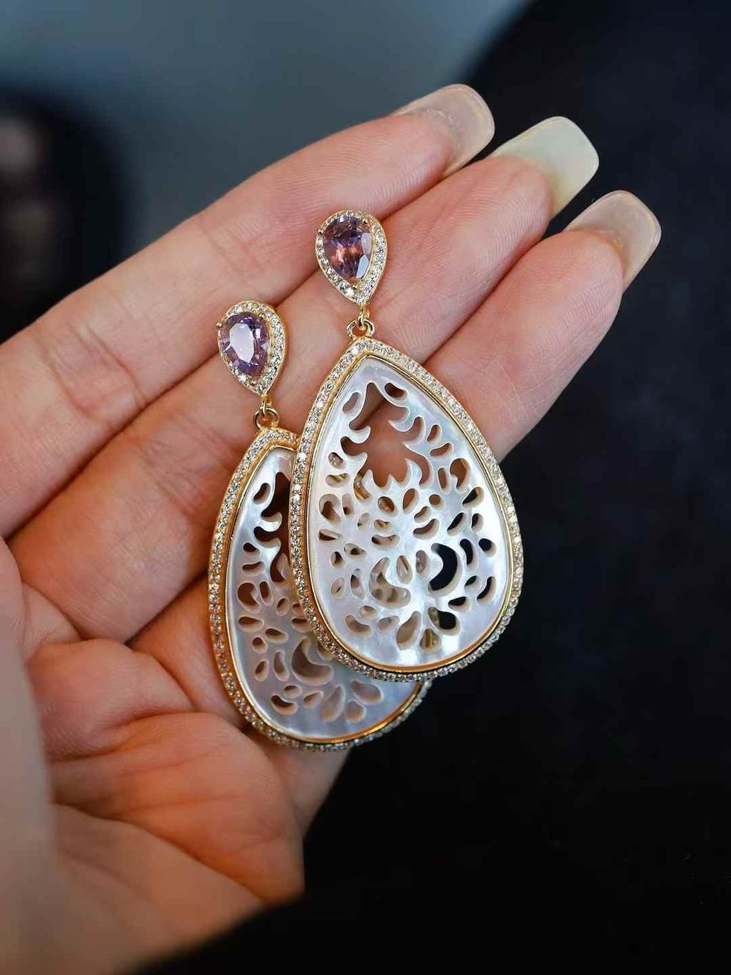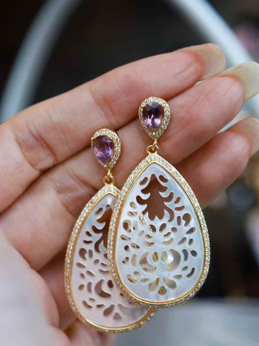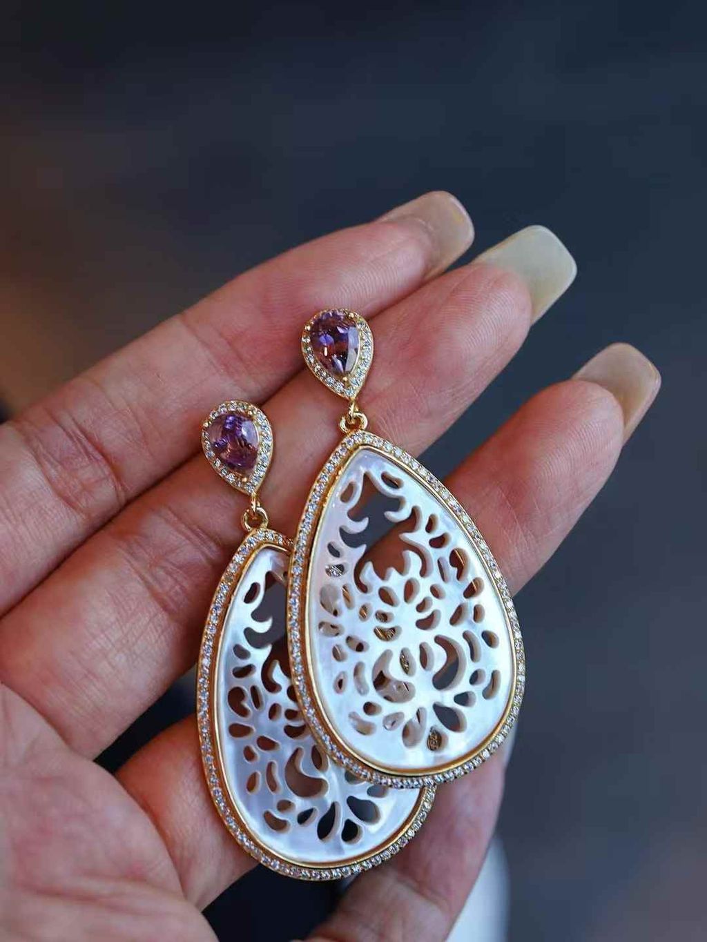 Designed White Mother-of-Pearl and Amethyst Earrings