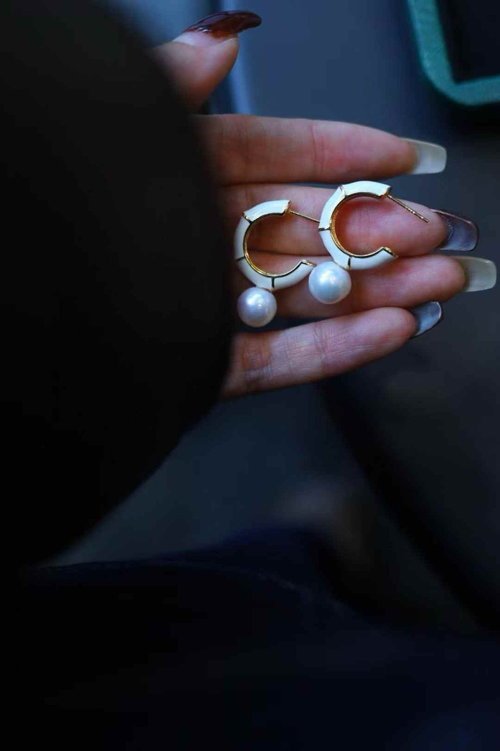 Refined Design: A perfect fusion of classic pearls and modern enameled artistry, ideal for both everyday wear and special occasions.