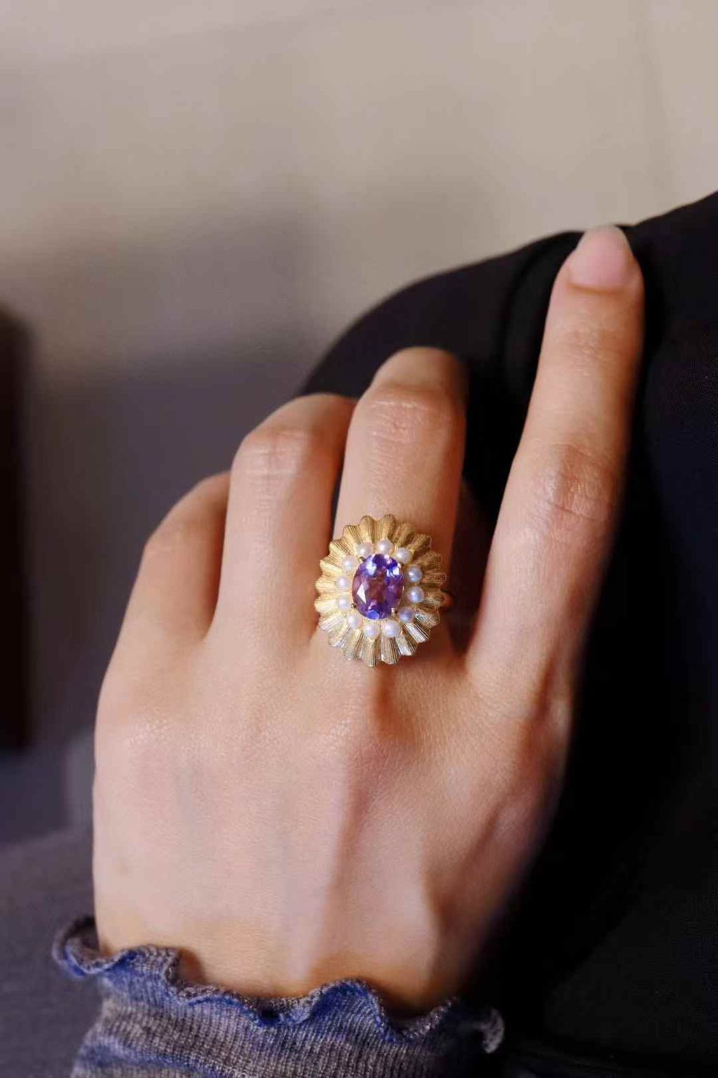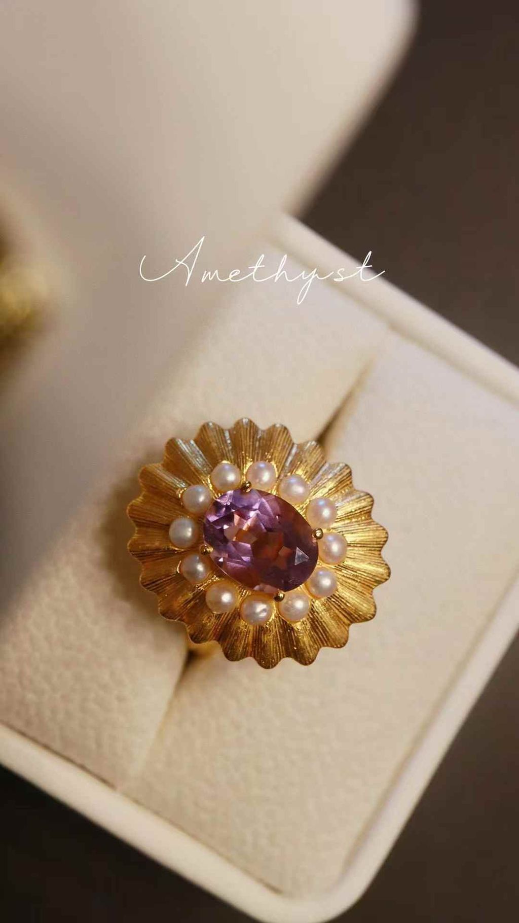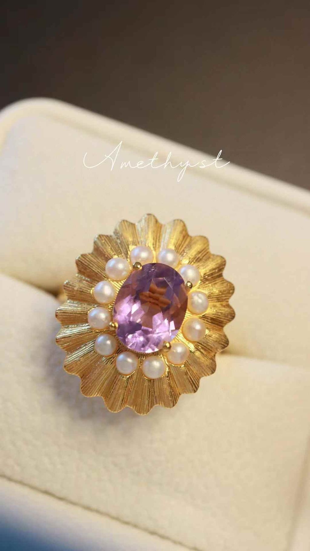 Natural Amethyst: Adorned with vibrant, high-quality natural amethyst, displaying stunning crystal clarity and rich purple hues.