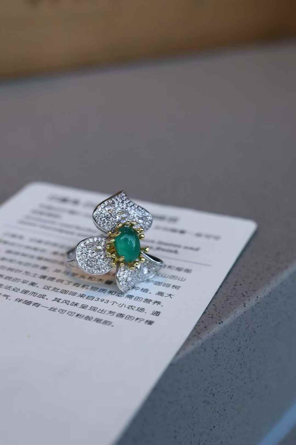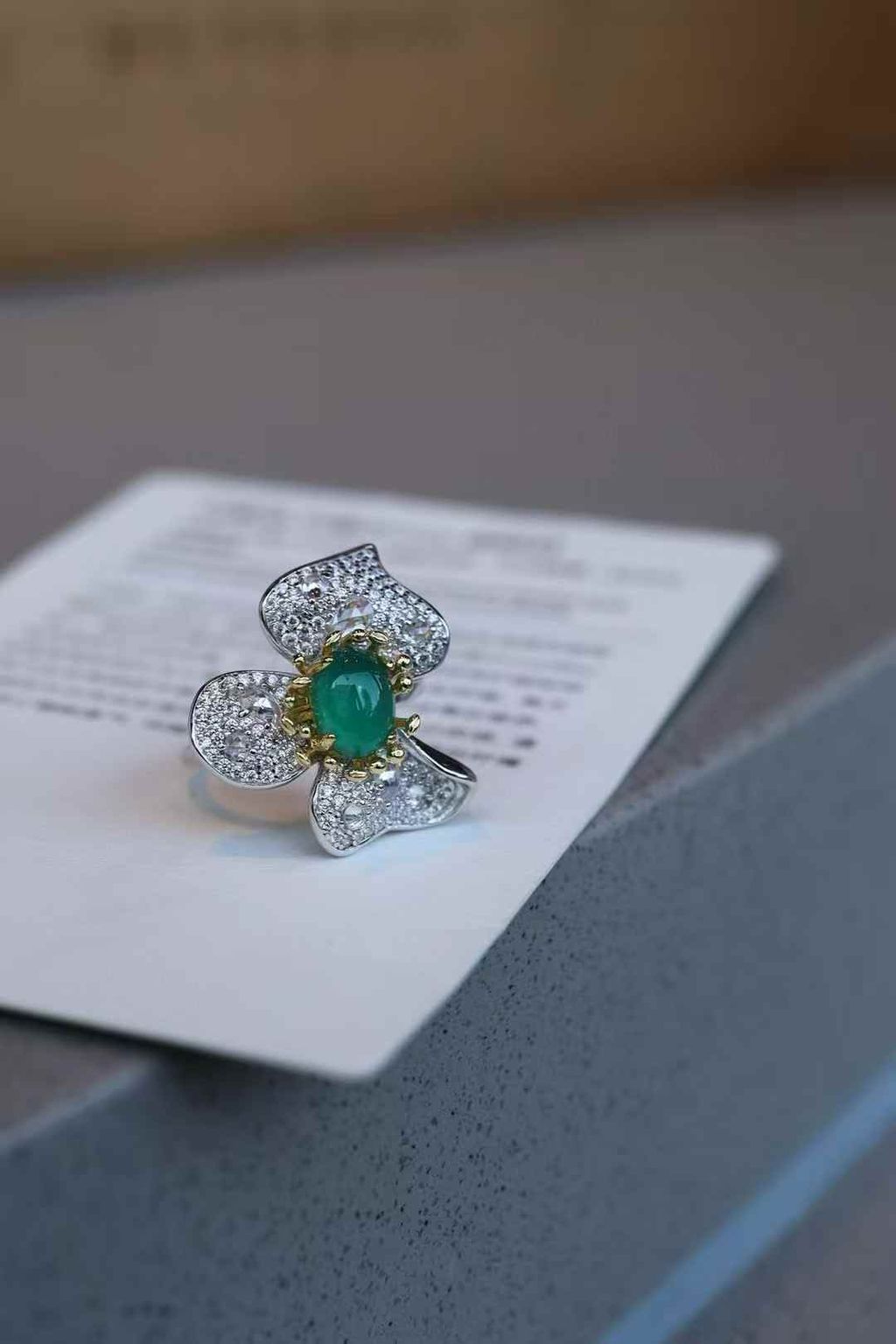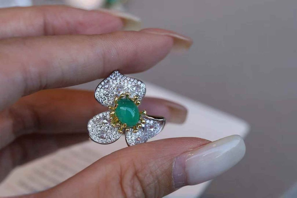 Embody elegance and luxury with our Natural Green Chalcedony Three-Petal Flower Ring, where a dazzling diamond outline meets the serene beauty of green chalcedony for a truly sophisticated look.