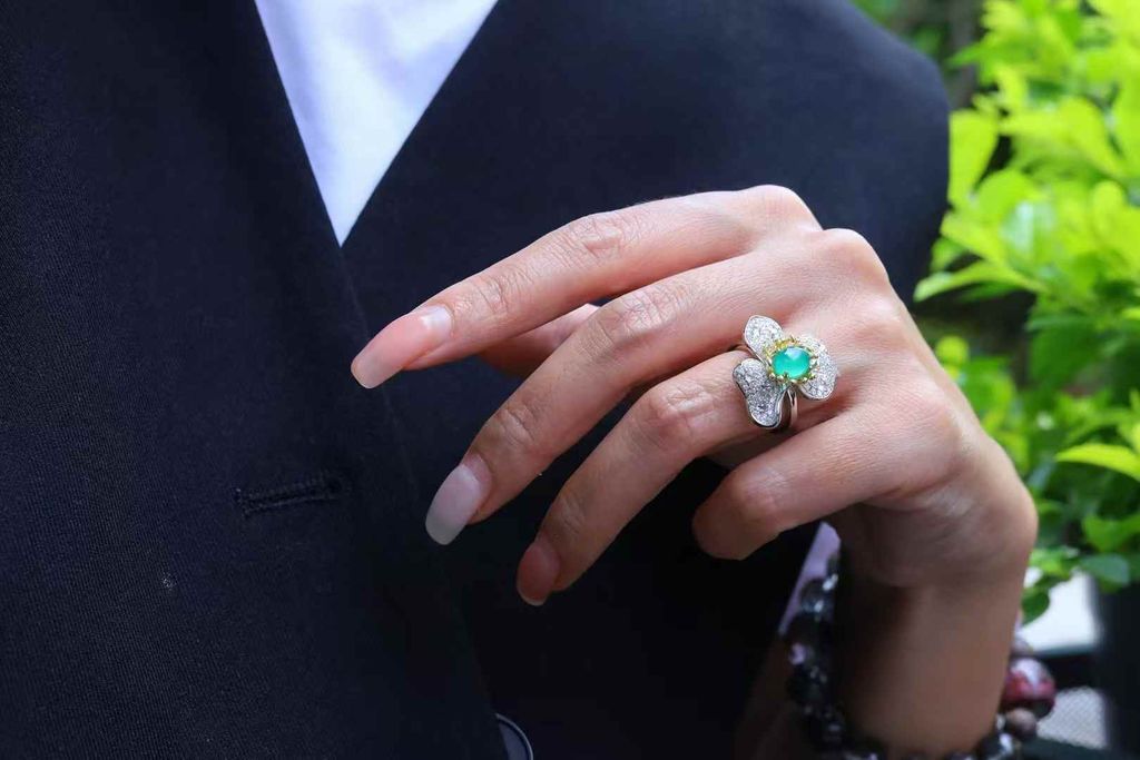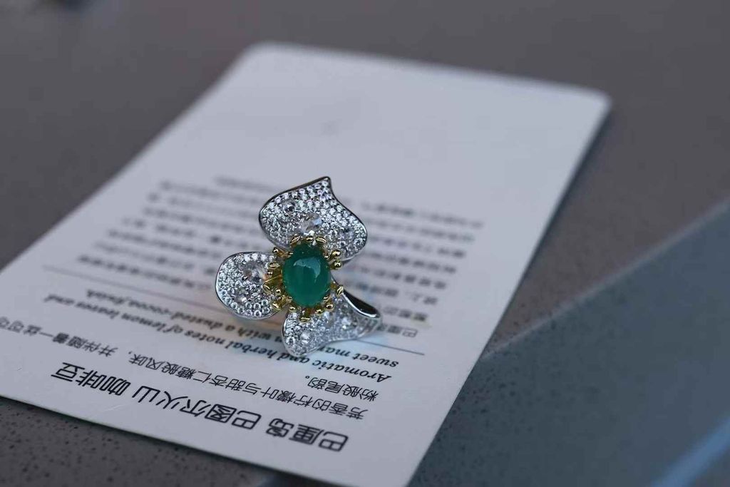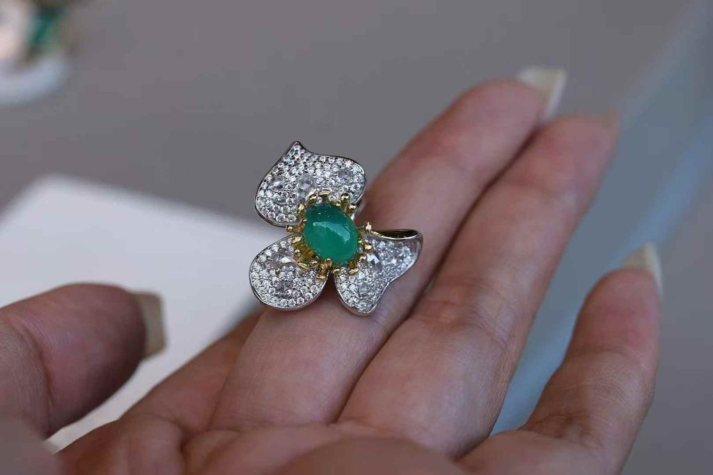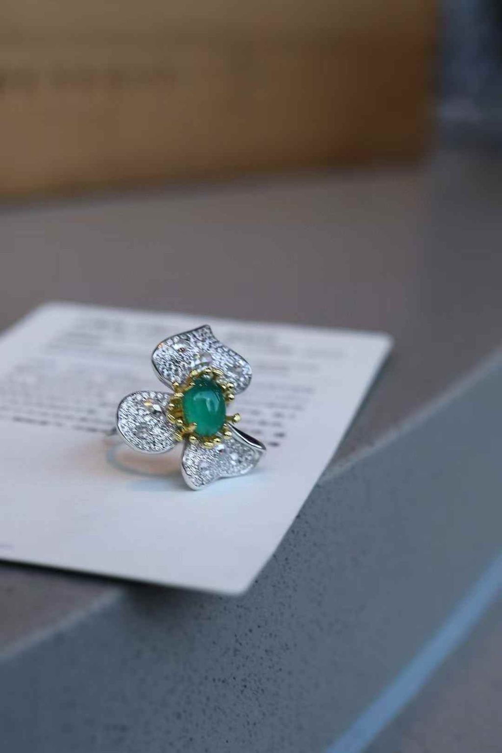 Embody elegance and luxury with our Natural Green Chalcedony Three-Petal Flower Ring, where a dazzling diamond outline meets the serene beauty of green chalcedony for a truly sophisticated look.