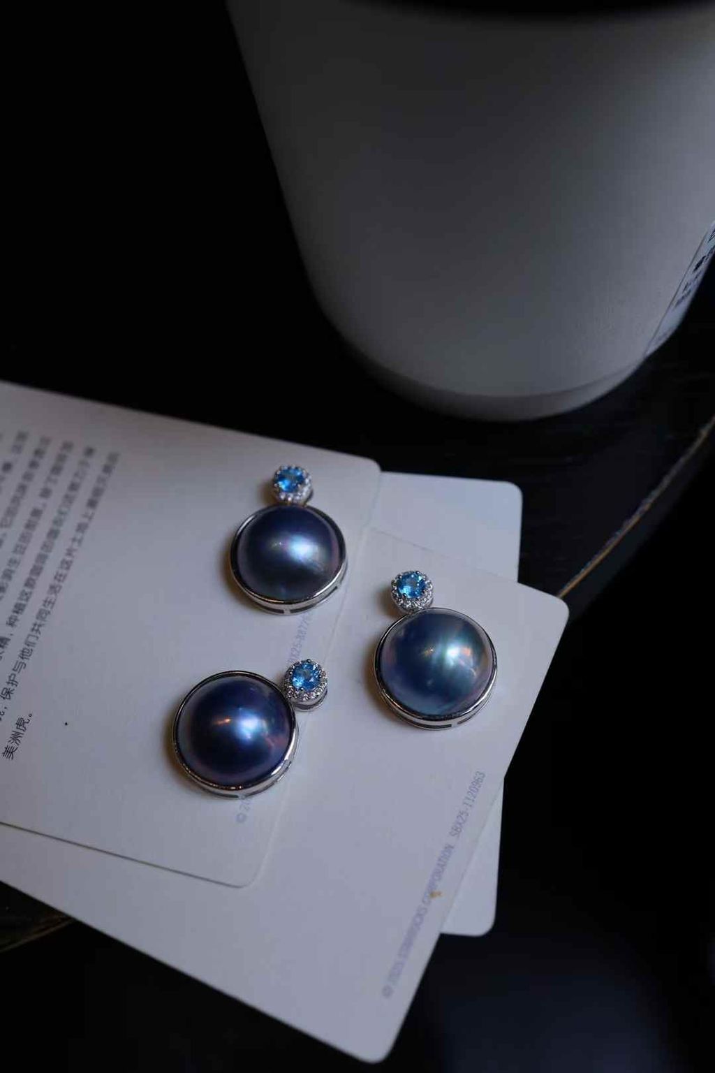 Experience unparalleled elegance with our exclusive Blue Mabe and Topaz Earrings, where the harmonious blue color scheme exudes extraordinary sophistication. Limited to just 12 handcrafted pieces in this batch.