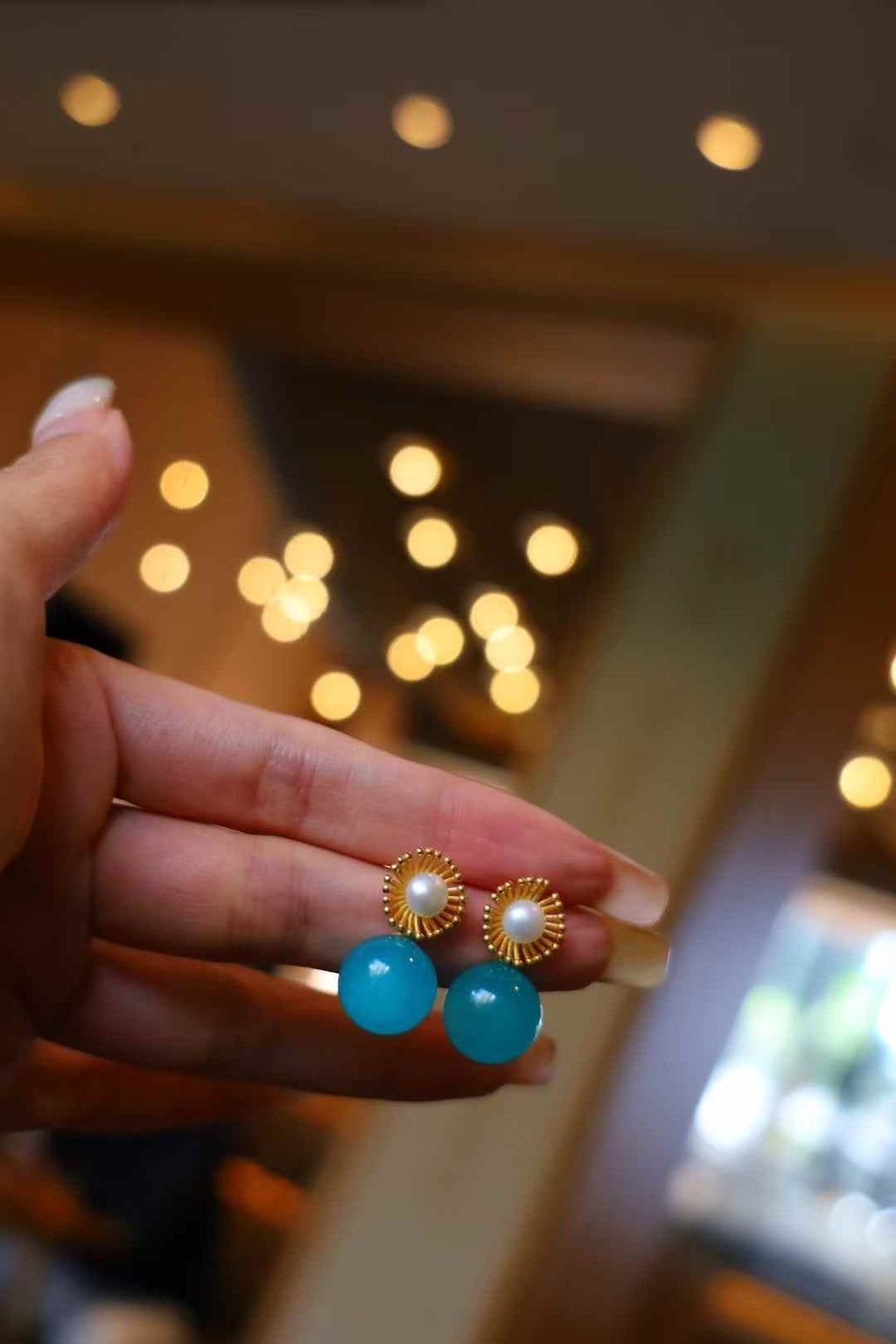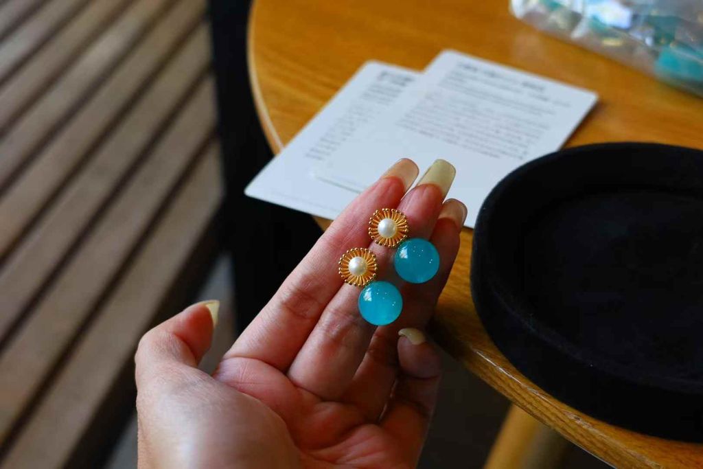 Natural Azurite & Pearl: Features hand-selected blue-green azurite paired with natural pearls, crafted into a charming flower shape for a serene and sophisticated look.