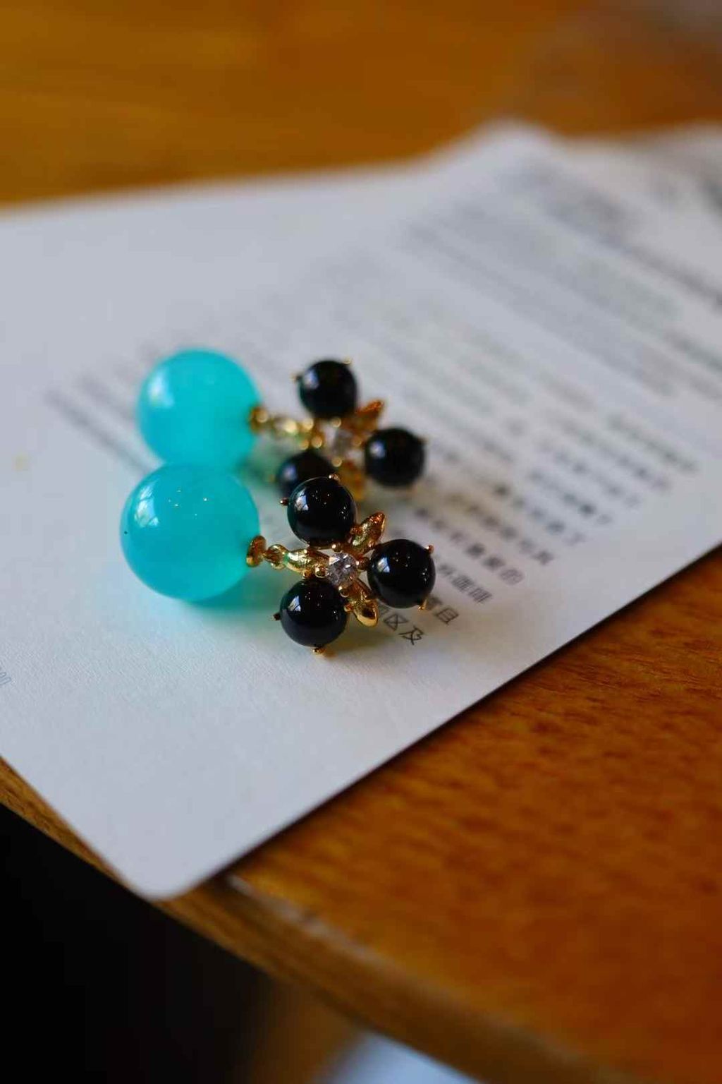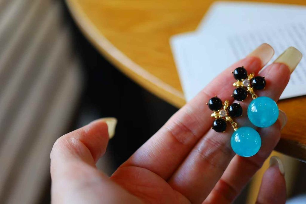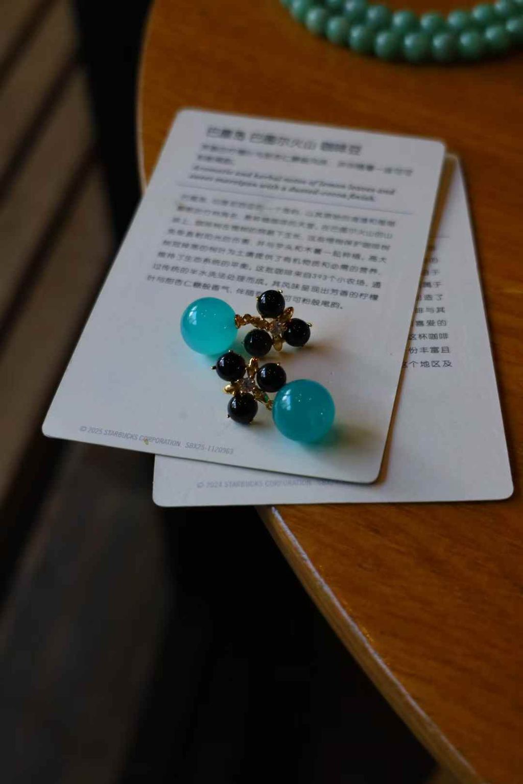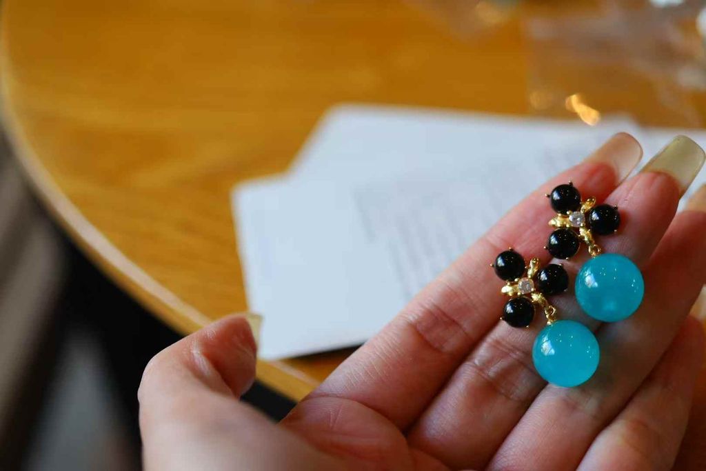 Natural Azurite and Agate: Hand-selected azurite with rich blue-green hues paired with natural agate, crafted into a graceful flower shape for a harmonious, organic look.