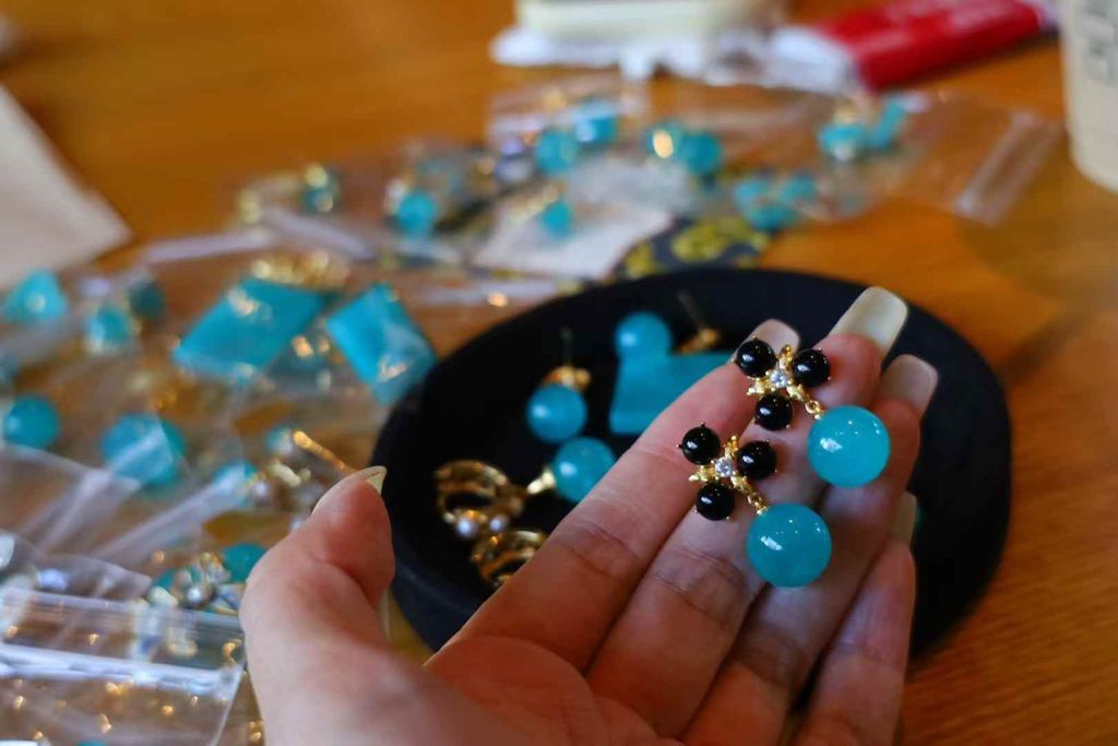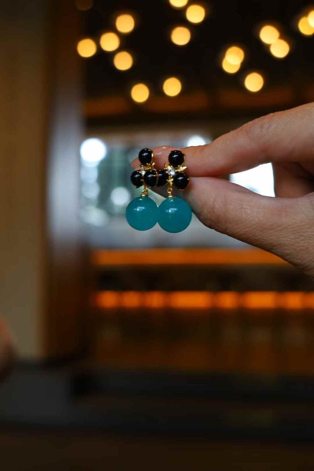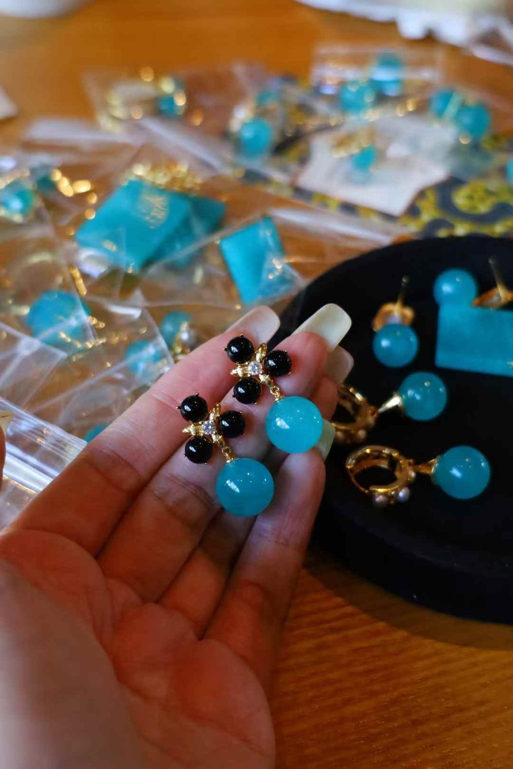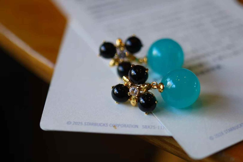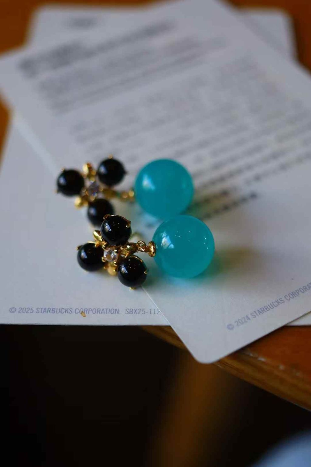 Natural Azurite and Agate: Hand-selected azurite with rich blue-green hues paired with natural agate, crafted into a graceful flower shape for a harmonious, organic look.