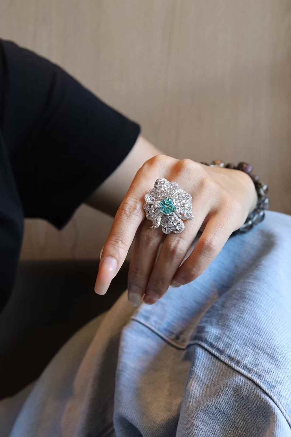 Micro-Set Zirconia: Beautifully adorned with meticulously micro-set zirconia, sparkling with a jewel-like brilliance that enhances the floral design.